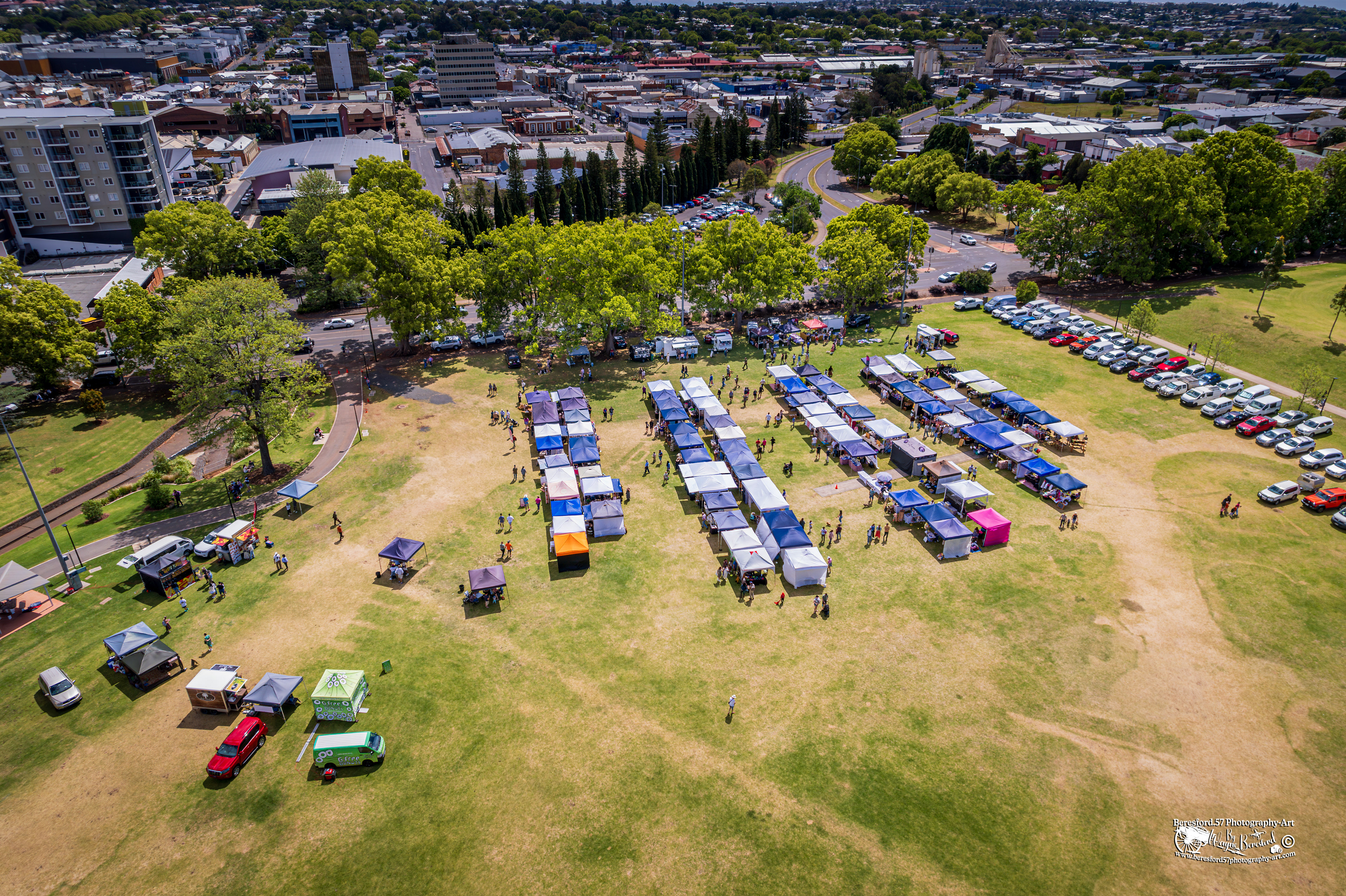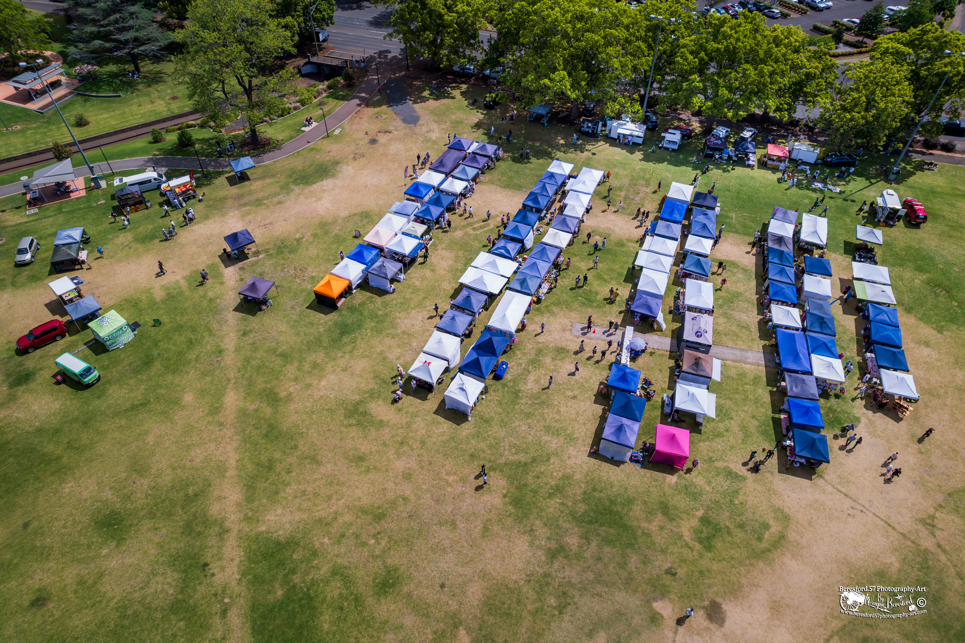 Drone Photos Of Queens Park Markets During Carnival Of Flowers September 2024